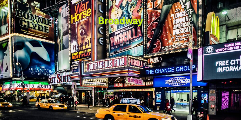 Broadway and the theater district are unforgettable. Its a world of neon lights, soaring voices, endless applause,classic plays, modern hits and bold experiments. They’re the past, present and future sharing the same stage. They’re friendly, fun and thrillingly alive. Broadway proves live theater still matters and the Theater District is its brightest stage. So grab your ticket, take your set and let the curtain rise.
